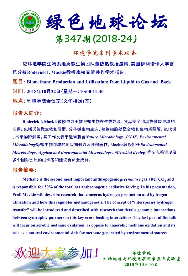 绿色地球论坛第347期(2018-24) ——9778818威尼斯系列学术报告会 题目:Biomethane Production and Utilization: from Liquid to Gas and Back 时间:2018年10月22日(周一)上午10:00-11:30 地点:9778818威尼斯会议室(文华楼201室)